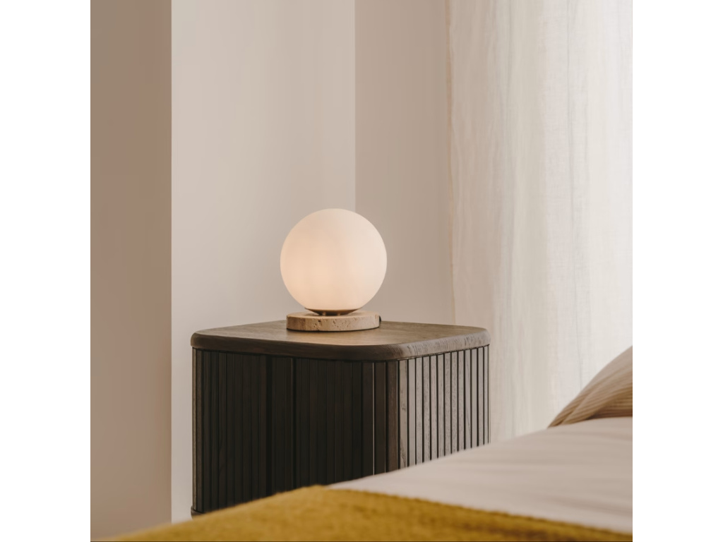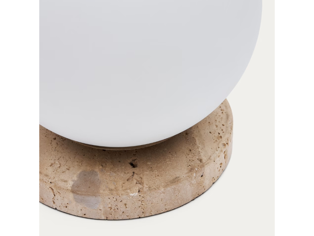 Dopřejte vašemu interiéru originální osvětlení v podobě stolní lampu Malachi! Glazované sklo společně s travertinem představuje dokonalou kombinaci, která dodá interiéru styl a přinese s sebou nádech luxusu. Skvěle se hodí do ložnice na noční stolek, ale i na vrchní desku komody.. Doporučujeme pořídit také závěsné světlo ze stejnojmenné série, se kterou budou tvořit dokonale sladěný pár. Použitý přírodní materiál v podobě atraktivního kamene travertin navíc lampě přidává na exkluzivitě – každý z vyrobených kousků se může mírně lišit tvarem i texturou.