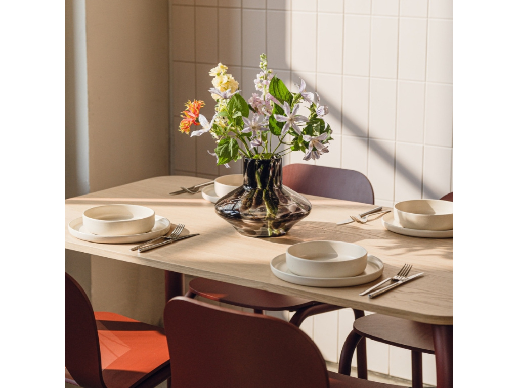 Váza Glom je ztělesněním jemnosti a elegance. Je vyrobená z foukaného skla a zaujme svým zaobleným tvarem s čistými liniemi, které působí moderně a nadčasově zároveň. Ať už do ní umístíte umělé či řezané květiny nebo ji necháte vyniknout jako solitér, stane se výrazným prvkem vašeho interiéru. Dostupná ve dvou odstínech – bílé a černé – ty nabízí dokonalý kontrast i harmonii podle toho, jaký styl ve vašem domově převládá. Glom v sobě spojuje jemnost materiálu s vizuální silou tvaru.