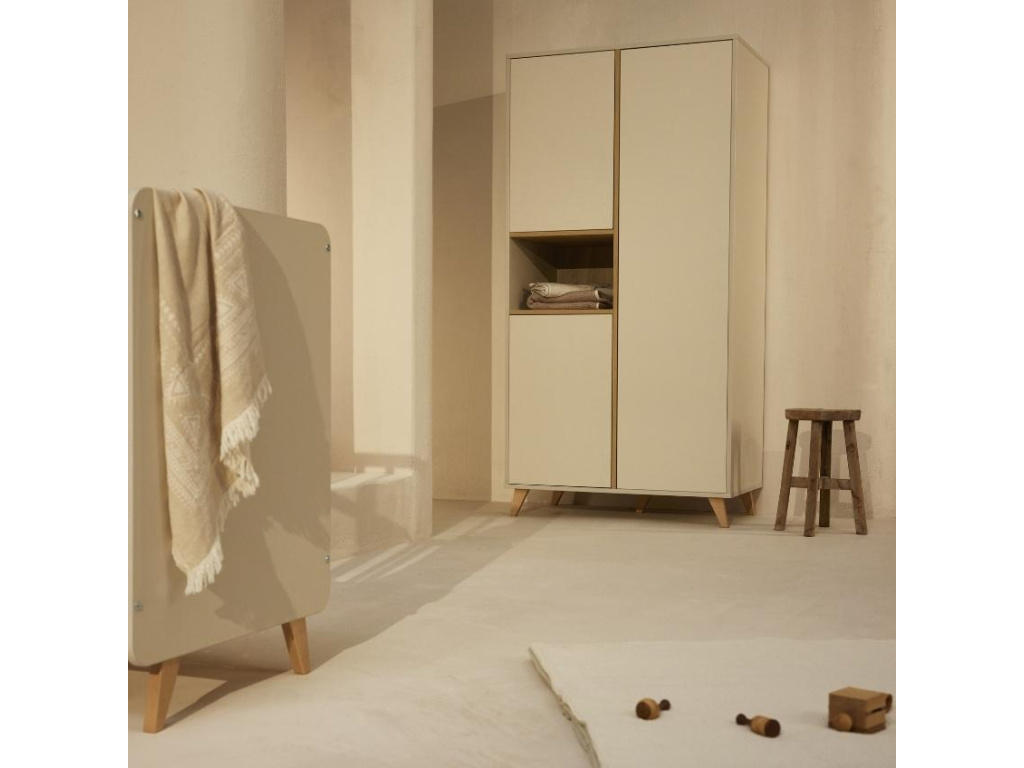 Moderní elegantní skříň Quax Loft je prostorným úložným místem na všechno dětské oblečení. Krásný jednoduchý vzhled s béžovými dvířky a korpusem z laminátu tvoří jemný kontrast s bukovou podnoží. Jemná barva a minimalistický design se bude skvěle hodit do skandinávských interiérů. Doplňte váš dětský pokoj o skvělý úložný prostor na dětské prádlo, plenky i botičky.
