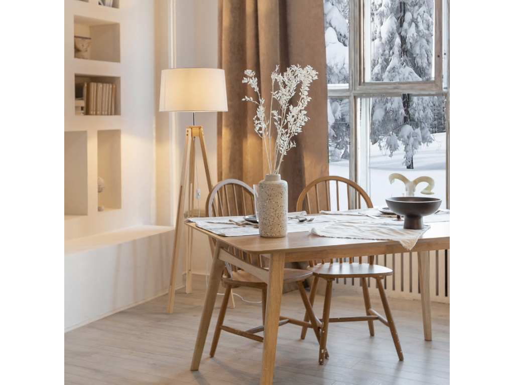 Stojací lampa Le Roy od Nova Luce se stane funkčním designovým doplňkem každého moderního či severského interiéru. Stabilní stativová podnož je vyrobena ze dřeva s přirozenou strukturou, k čemuž dokonale ladí čistě bílé stínidlo v jednoduchém kulatém tvaru. Tato moderní lampa bude nenápadným, leč stylovým kouskem, ať už bude stát vedle pohovky nebo v rohu vaší jídelny. Díky neutrálním barvám skvěle zapadne do světlého i barevněji laděného interiéru.