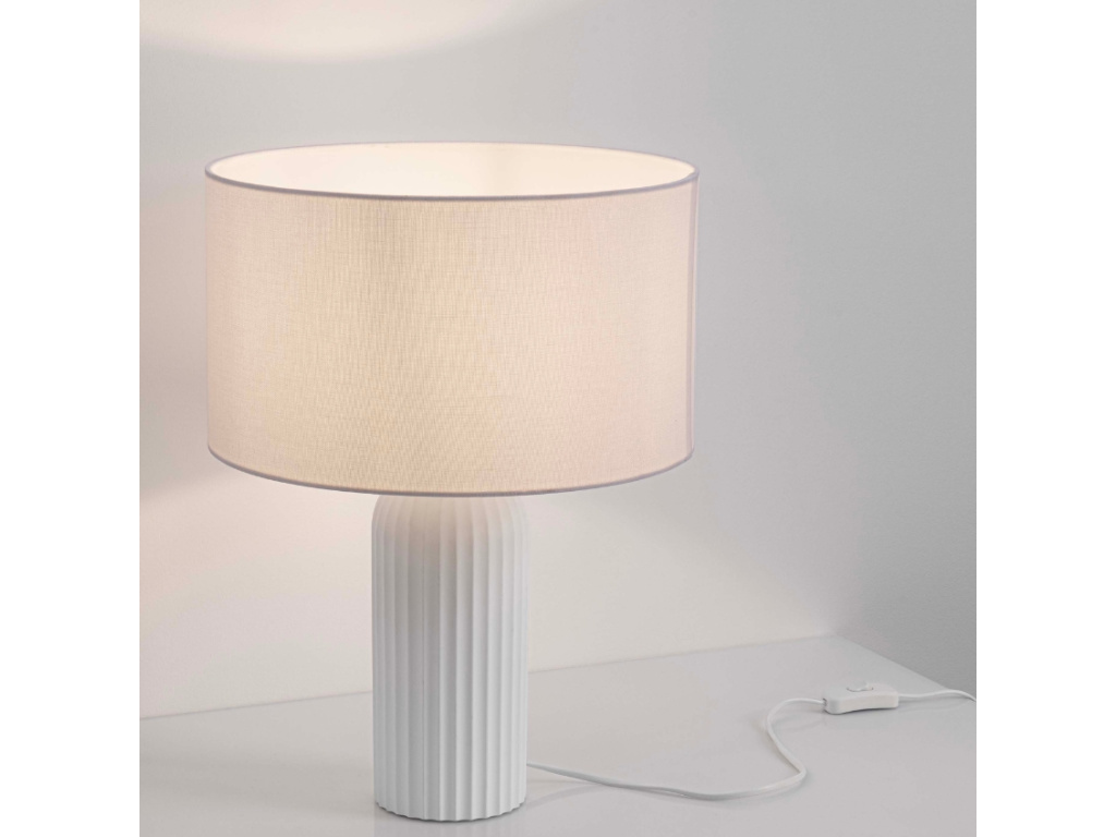 Stolní lampa Ammos od Nova Luce je elegantní doplněk pro moderní i klasické interiéry. Její podstava je dostupná ve dvou barevných variantách – bílá je vyrobena ze sádry a šedá z betonu, což dodává lampě odlišné charakteristické vyznění. Stínidlo z bílé textilie propouští měkké a příjemné světlo, které vytvoří klidnou atmosféru. Lampa je vybavena paticí E27 a umožňuje použití stmívatelné žárovky, což zajistí nastavení intenzity světla podle potřeby. Skvěle se hodí na noční stolek, do obývacího pokoje nebo na pracovní stůl, kde spojí praktickou funkci s dekorativním prvkem.