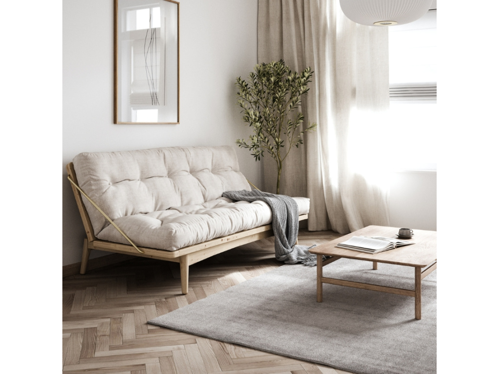 Třímístná rozkládací pohovka Folk značky Karup Design se stane vaším oblíbeným společníkem. Jednoduchým pohybem se elegantní pohovka promění na praktické lůžko. Konstrukce z masivního borovicového dřeva s FSC certifikací je doplněna kvalitní 14 cm vysokou futonovou matrací, která v sobě kombinuje recyklovaná vlákna a 4 cm pěnu. Praktickým detailem této pohovky jsou designové kovové opěrky, které snadno odepnete a vytvoříte tak postel pro dva. Folk se skvěle hodí do skandinávsky laděných domovů. Představuje skvělé řešení především pro menší interiéry, kde oceníte další místo na spaní. Vybrat si můžete z široké škály barev.