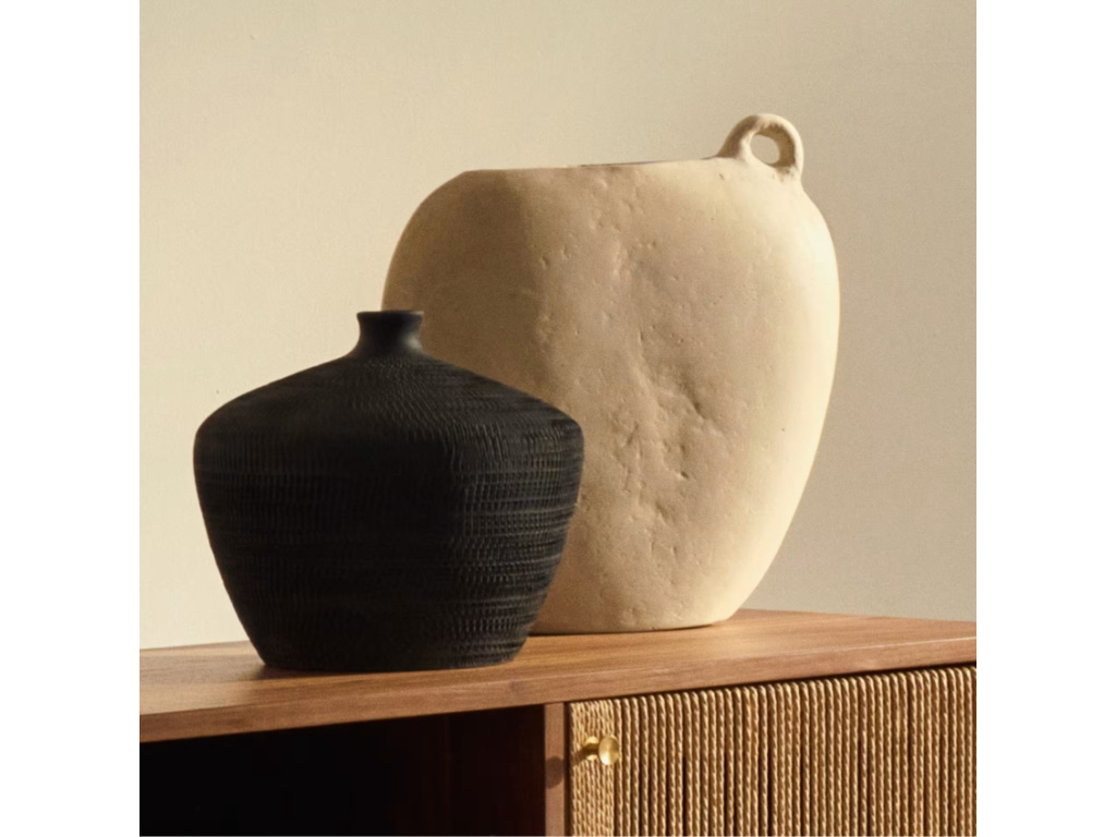 Série papírmašových váz Kave Home Neti s sebou do interiéru přinese nádech dob dávno minulých – připomíná dekorativní předměty z dob antiky. Dostupné jsou dvě velikosti – vybrat si můžete menší o výšce 27 cm, nebo o 10 cm větší. Tyto designovky mohou ozdobit třeba noční stolek, komodu nebo jídelní stůl.