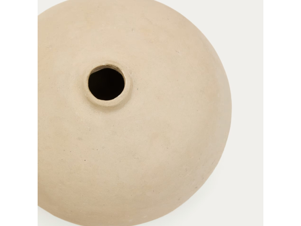 Váza Nivala je důkazem, že krása může vzniknout i z těch nejprostších materiálů. Vyrobená z recyklovaných novin technikou papier-mâché okouzlí svým jemně kulatým tvarem, hladkým povrchem a organickým charakterem. Každý kus je originál – s drobnými rozdíly v tónu i struktuře, které mu dodávají osobitost a přirozený šarm. Díky svému neutrálnímu vzhledu se Nivala hodí téměř kamkoli – na polici, komodu, nebo do centra jídelního stolu. Skvěle vynikne samostatně i ve skupině – dostupná je ve třech různých velikostech.