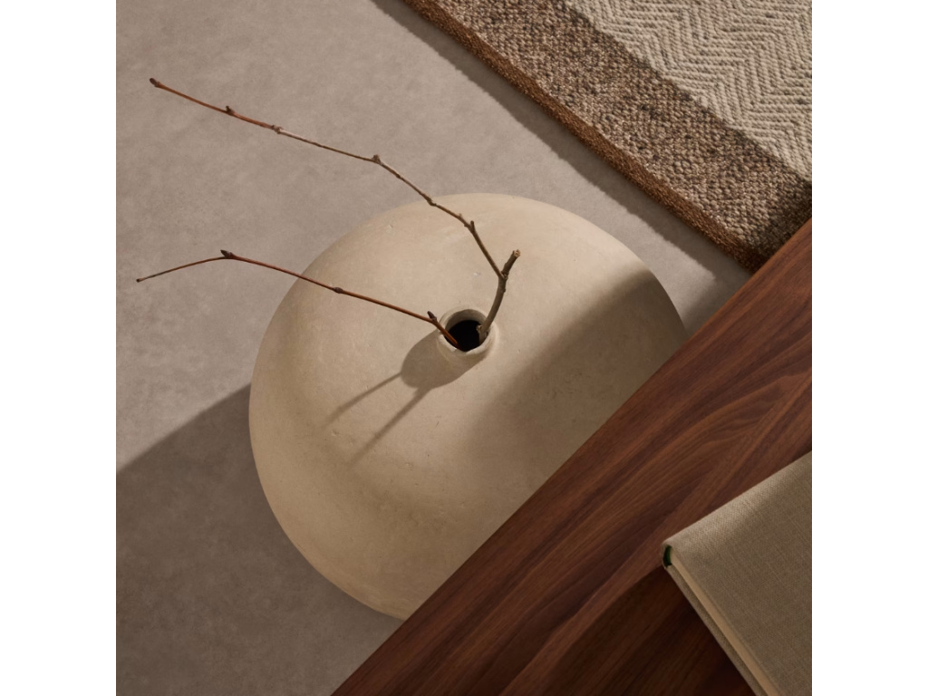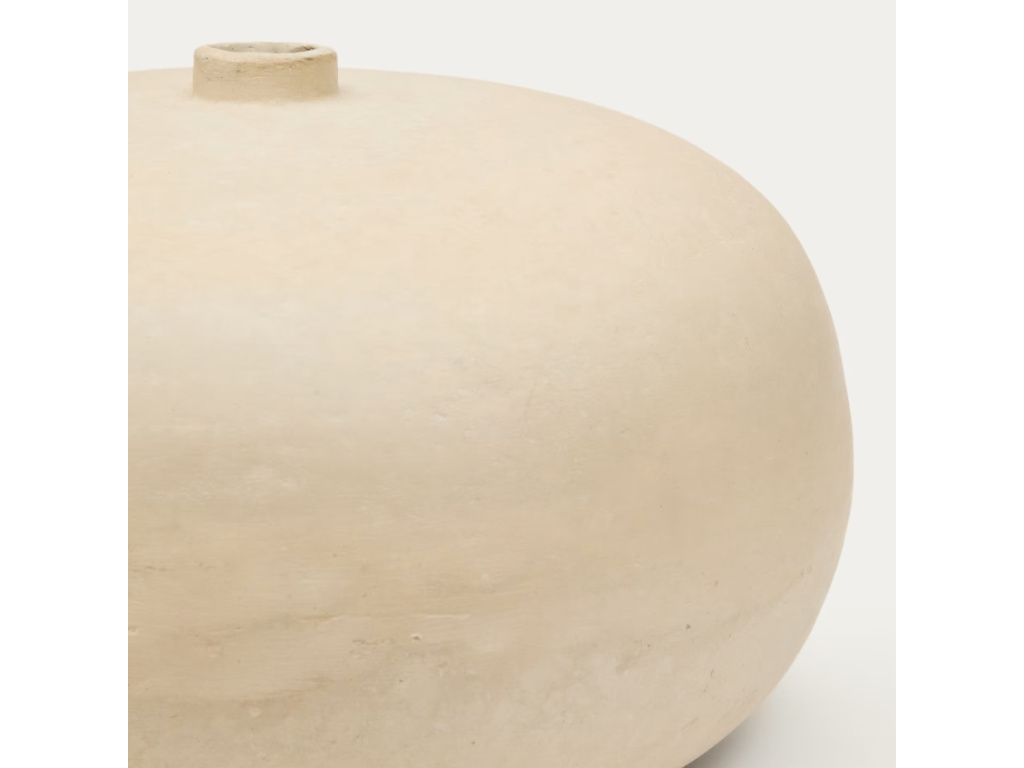 Váza Nivala je důkazem, že krása může vzniknout i z těch nejprostších materiálů. Vyrobená z recyklovaných novin technikou papier-mâché okouzlí svým jemně kulatým tvarem, hladkým povrchem a organickým charakterem. Každý kus je originál – s drobnými rozdíly v tónu i struktuře, které mu dodávají osobitost a přirozený šarm. Díky svému neutrálnímu vzhledu se Nivala hodí téměř kamkoli – na polici, komodu, nebo do centra jídelního stolu. Skvěle vynikne samostatně i ve skupině – dostupná je ve třech různých velikostech.