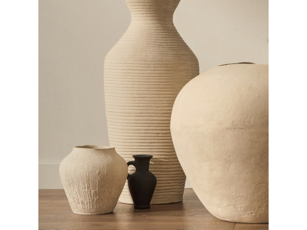 Elegantní váza Kave Home Pria bude svým rozměrem výraznou a nepřehlédnutelnou ozdobou interiéru. Je vyrobena z papírmaše – recyklovaného materiálu, který je trendy a dodá vaší domácnosti na osobitosti. V sérii navíc najdete také menší provedení tohoto designového kousku, se kterým se bude skvěle doplňovat.
