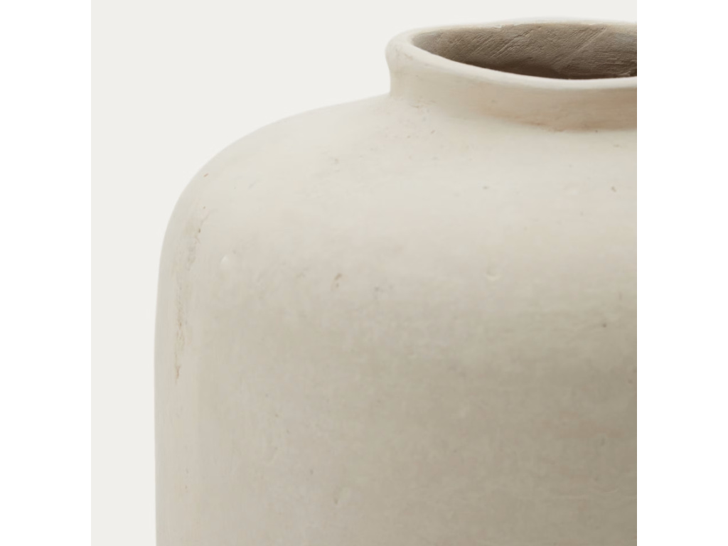 Elegantní váza Kave Home Serina je ručně vyrobena z bílého papírmaše z recyklovaných novin. Tento trendy materiál s sebou přinese osobitost – recyklované materiály interiérům zkrátka sluší. Papírmaš je směs drceného papíru, vody a lepidla, která se po vytvarování lije do forem a poté se suší. Díky tomu bude každý kousek originální se svými jedinečnými odstíny a texturami. Váza je dostupná hned ve dvou velikostech a bude se skvěle doplňovat s dalšími papírmašovými produkty, kterých v Kave Home najdete více.