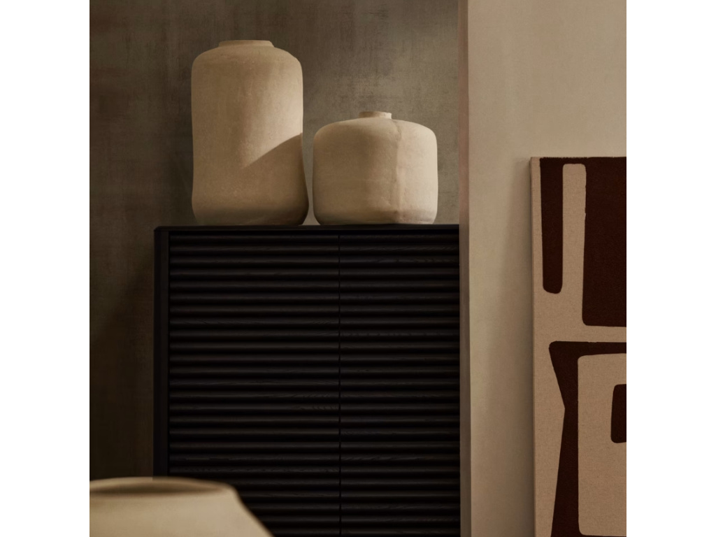 Elegantní váza Kave Home Serina je ručně vyrobena z bílého papírmaše z recyklovaných novin. Tento trendy materiál s sebou přinese osobitost – recyklované materiály interiérům zkrátka sluší. Papírmaš je směs drceného papíru, vody a lepidla, která se po vytvarování lije do forem a poté se suší. Díky tomu bude každý kousek originální se svými jedinečnými odstíny a texturami. Váza se bude skvěle doplňovat s dalšími papírmašovými produkty, kterých v Kave Home najdete více.