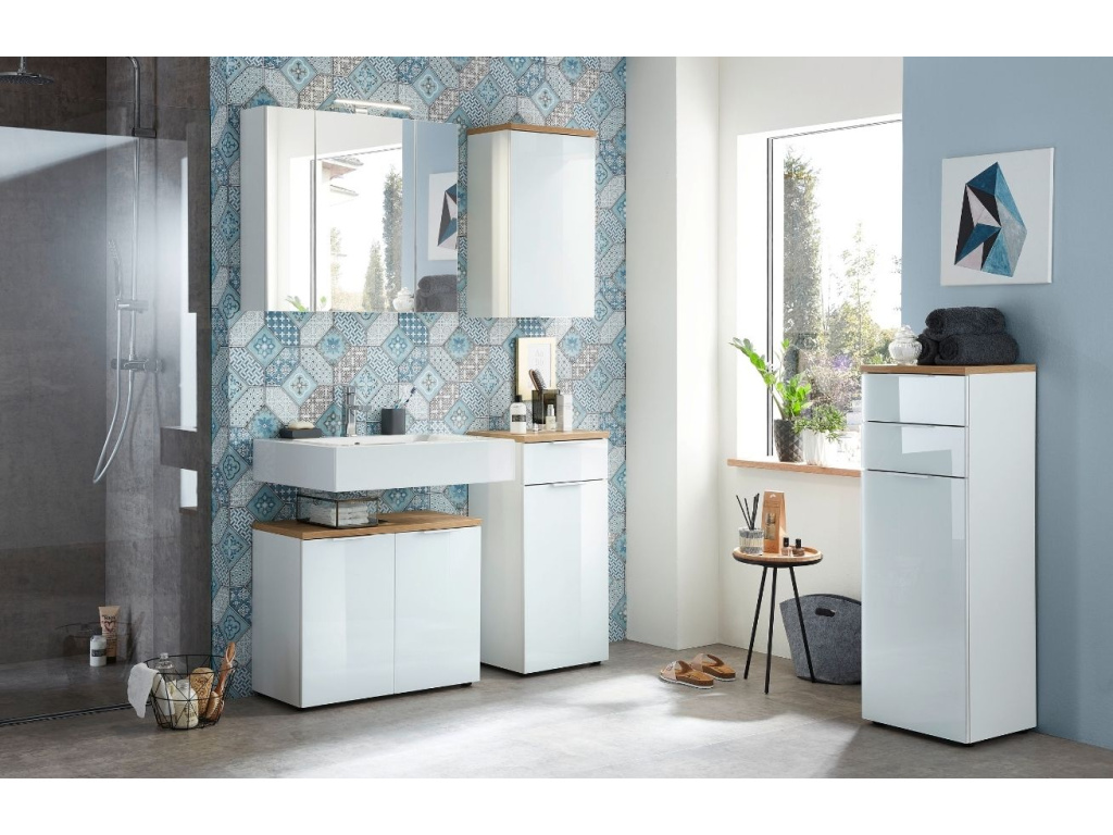 Zrcadlová skříňka Pescara je ideálním řešením pro ty, kteří hledají spojení moderního designu a praktického úložného prostoru. S rozměry 76 × 71 se skříňka hodí i do menších koupelen či toalet, kde efektivně využije dostupný prostor. Tři zrcadlové dveře poskytují dostatečnou zrcadlovou plochu pro každodenní hygienu, zatímco šest skleněných polic uvnitř nabízí dostatek místa pro uložení kosmetiky, léků a dalších potřeb. Skříňka je vybavena integrovaným LED osvětlením, které zajišťuje optimální osvětlení při péči o vzhled.