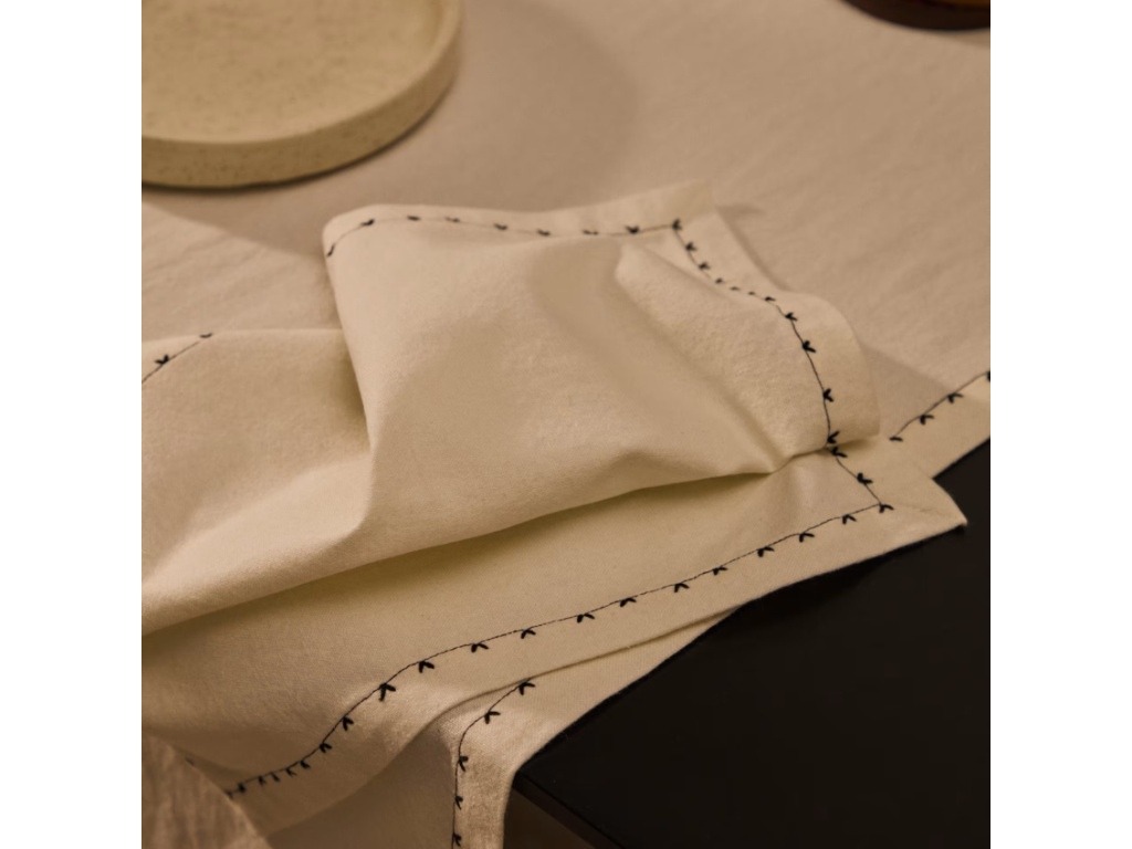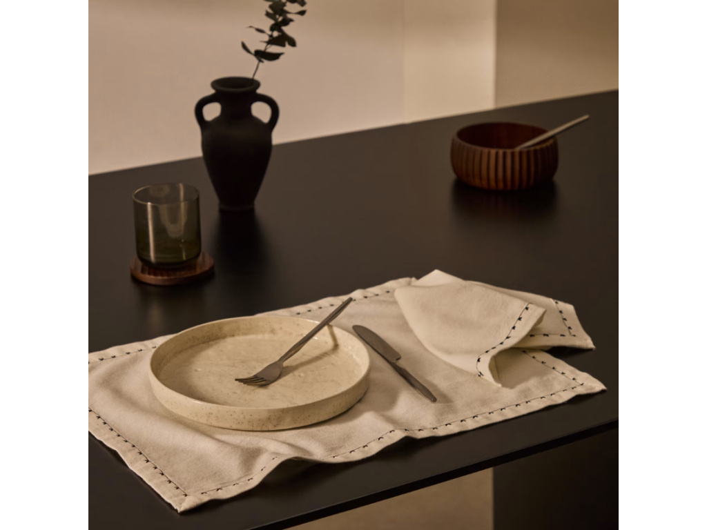 Kolekce kuchyňského textilu Kave Home Olim dodá vašemu stolování hřejivý a osobitý nádech, který ocení vaše rodina i hosté. V kolekci naleznete běhoun, ubrousky i prostírání, čímž můžete docílit dokonale sladěného setu. Vše je navrženo s velkým důrazem na kvalitu a detail – materiálem je 100% bavlna, která je zdobena kontrastní černou výšivkou s drobnými romantickými detaily.