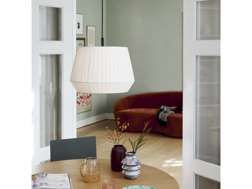 Stínidlo z ručně tkané bavlny dodává světlu Dicte od dánské značky Nordlux příjemně měkký charakter. Jemné záhyby vytvářejí působivou strukturu, která propůjčí interiéru patřičnou útulnost a stylový akcent. Jeho tlumené světlo je ideální pro relaxační zóny, ložnice nebo elegantní obývací pokoje. Nadčasový design v bílé či béžové barvě tohoto světla snadno zapadne do skandinávských i boho interiérů.