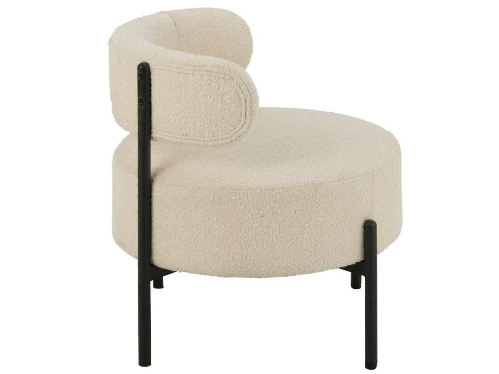 Designové křeslo Fluffy vás na první pohled zaujme svým kulatým tvarem. Je čalouněné měkkou bouclé látkou v bílé barvě, která přímo vybízí k odpočinku. Otevřené opěradlo propůjčuje křeslu vzdušný vzhled a nabízí komfortní oporu zad. Díky svým kompaktním rozměrům se hodí i do menších interiérů – ložnic, čtecích koutků nebo moderních obývacích pokojů. Skvěle vypadá jak samostatně, tak v páru. Tento kousek spojuje styl a pohodlí v jednom jedinečném kusu nábytku.