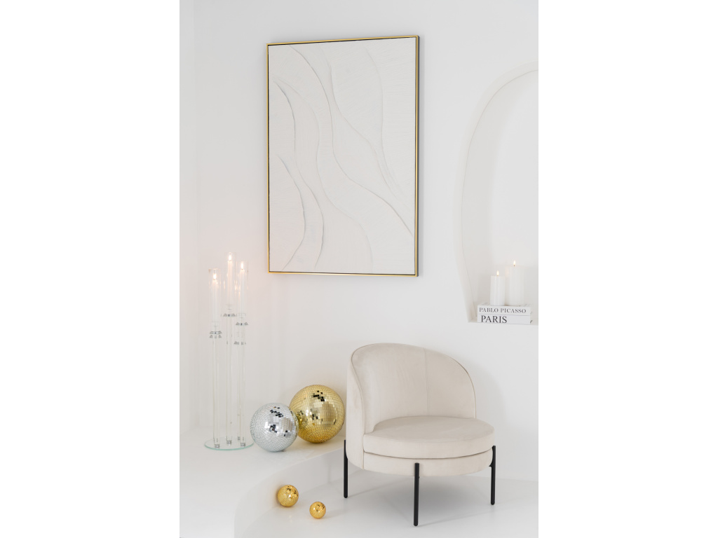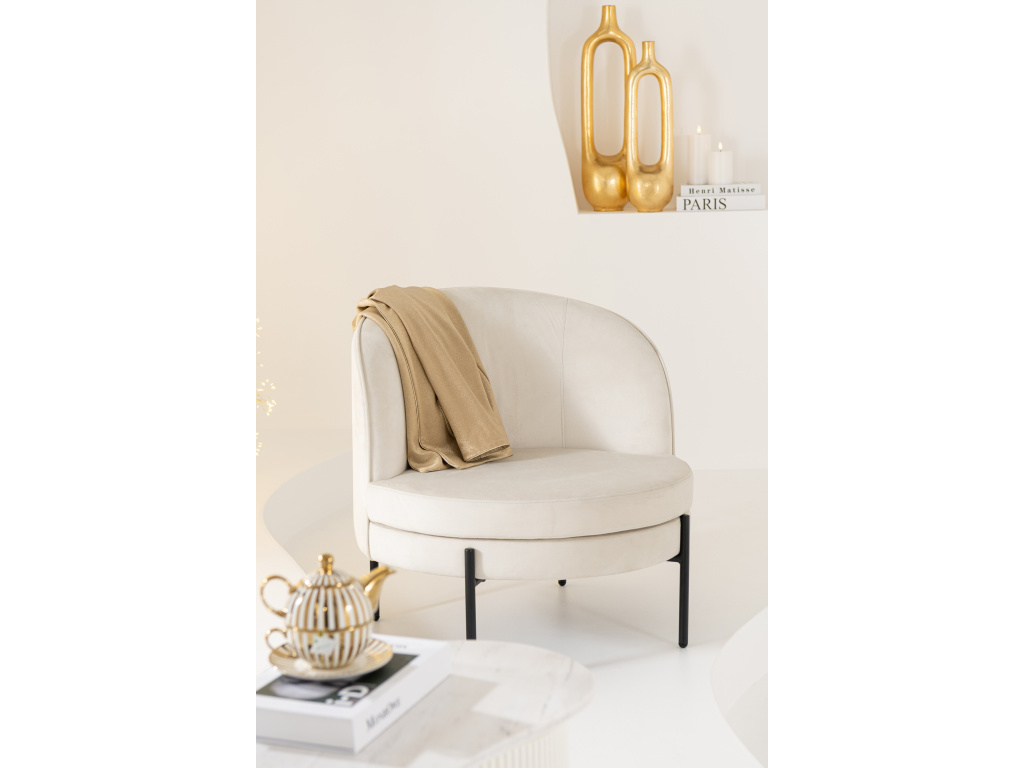 Křeslo Amy v jemném bílém odstínu promění každý interiér v oázu klidu. Oblé linie a měkké čalounění vás doslova zvou, abyste se uvelebili a užili si chvilku pro sebe. Díky nadčasovému designu se skvěle hodí do moderního interiéru. Subtilní kovová podnož dodává křeslu lehkost a zároveň zajišťuje jeho pevnost. Ať už ho umístíte do obývacího pokoje, ložnice nebo pracovny, vždy se stane stylovým středobodem prostoru.