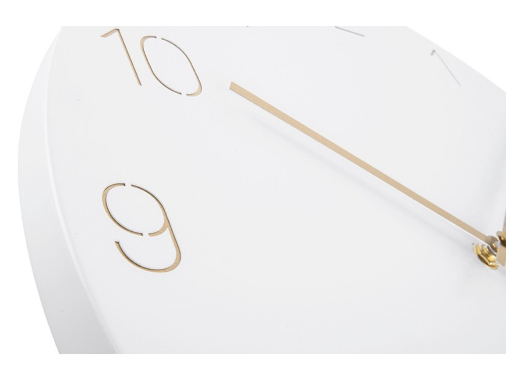 Nástěnné hodiny Charmie s vygravírovanými číslicemi budou ozdobou interiéru. Kombinace bílého ciferníku a zlatých číslic a ručiček působí elegantně a dodává hodinám nádech luxusu. Nechte tyto okouzlující hodiny ozdobit zeď vaší ložnice, kuchyně nebo předsíně – slušet jim to bude kdekoliv!