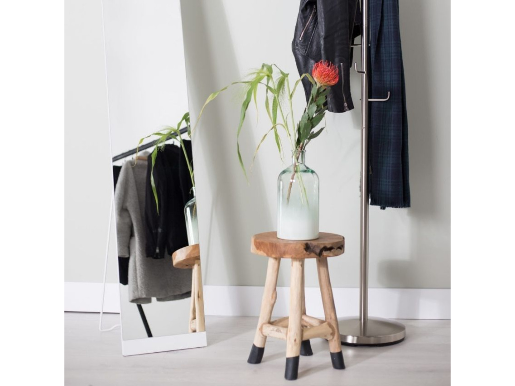 Zrcadlo Stand je 3 mm tenké a pro větší pevnost je položeno na 12 mm silné MDF desce. Perfektní stabilitu zajišťuje pevný ocelový rám v bíle lakovaném provedení. Zaujme vás především jednoduchý, avšak elegantní design