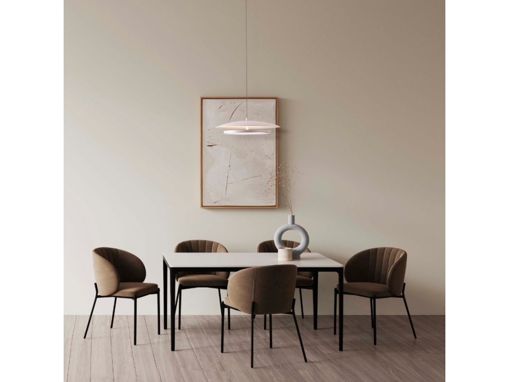 Série Olos zaujme svou jednoduchostí a nadčasovým vzhledem, díky čemuž se snadno začlení do různých typů interiérů. Elegantní svítidla se pyšní symetrickým designem, který kombinuje matně bílý povrch s jemným stříbrným akcentem na stínidle. Tato světla jsou ideální pro obývací pokoje, jídelny či moderní pracovní prostory, kde vytvoří příjemné a vyvážené osvětlení. Světla Olos jsou zároveň stmívatelná, což umožňuje regulovat intenzitu světla a podtrhnout atmosféru prostoru přesně podle vašich představ.
