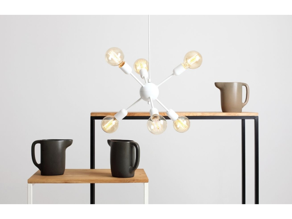 Moderní bílé závěsné světlo Trimo Globe rozzáří každou místnost a zároveň dodá interiéru originální design. Jednoduché linie minimalistického designu doplňují holé žárovky bez krytu, které dodají dostatek světla i těm nejtemnějším koutům. Světla Trimo jsou vhodná pro všechny milovníky designu a netypických originálních prvků.