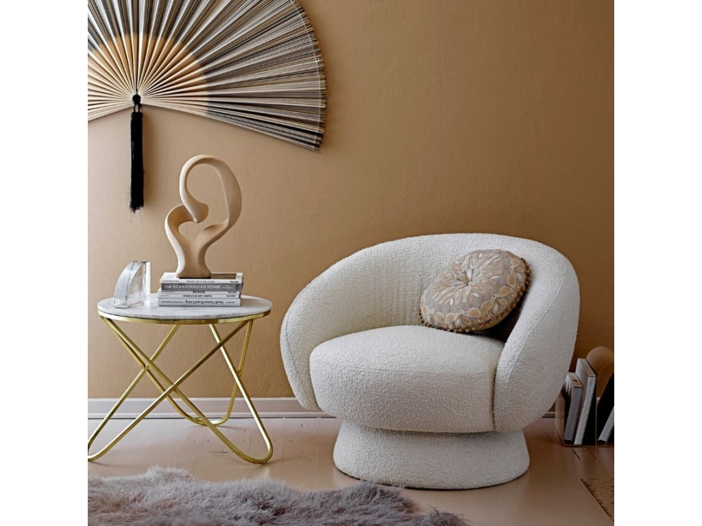 Originální lounge křeslo Bloomingville Ted svým baculatým tvarem přímo vyzývá k pohodlnému posezení a ke chvilce relaxace. Křeslo je čalouněné kvalitní a odolnou látkou bílé barvy s jemnou strukturou, která je velice příjemná na dotek a působí nadýchaným dojmem. Křeslo se hodí nejen do domácnosti - vyjímat se bude především v prostorech hotelů nebo kaváren.