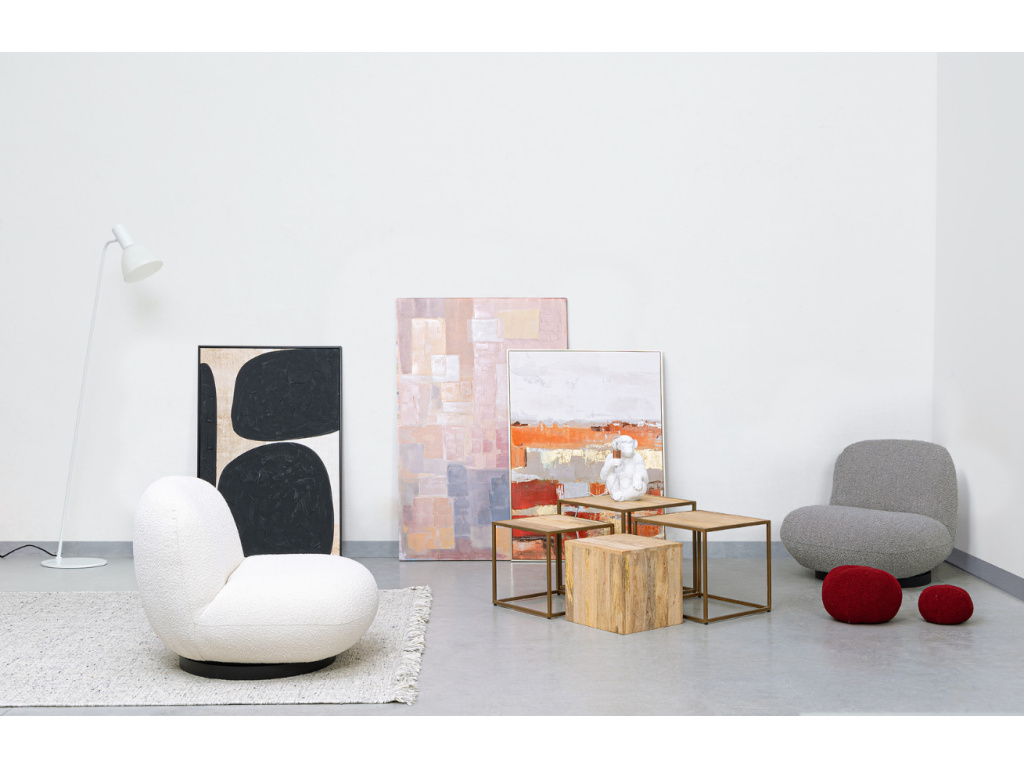 Toto stylové křeslo Margot od značky Bizzotto okouzlí majitele interiérů naladěné na moderní, skandinávský nebo japandi styl. Právě v těchto stylech křeslo skvěle vynikne pro svůj čistý a harmonický design. Zcela jistě oceníte jeho otočnou funkci a pohodlnost sedadla, které je tvořeno rámem z překližky, vyplněno pěnou a čalouněné polyesterovou tkaninou, která nechává vyniknout bouclé efektu. Zachumlejte se s dekou a odpočiňte si v křesle Margot.