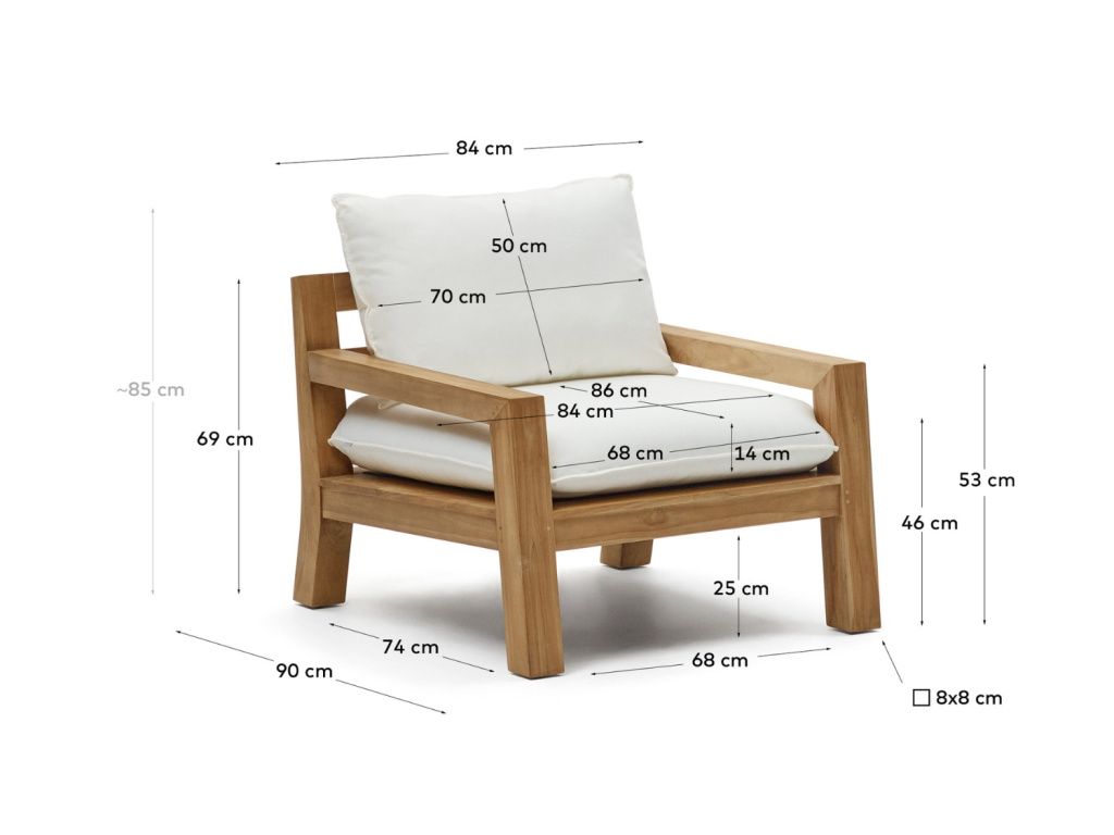 Zahradní křeslo Forcanera od značky Kave Home je vyrobené z teakového dřeva, které doplňují dva čalouněné polštáře, které zajistí značnou dávku pohodlí. Křeslo je součástí série zahradního nábytku, které promění vaše zahradní posezení ve stylové a velice útulné místo, kde bude potěšením trávit večery s rodinou a přáteli. Proto neváhejte a podívejte se i na další produkty Forcanera – v sérii najdete také konferenční stolek, pohovku nebo lehátko.