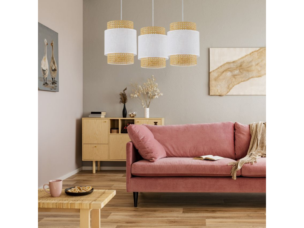Podívám seBílé ratanové závěsné světlo Castor se třemi stínidly 70 cm