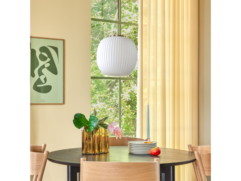 Přineste do svého interiéru nadčasovou eleganci se závěsným světlem Serene, které okouzlí svým jemným žebrováním a zlatými detaily. Toto svítidlo poskytne nejen příjemné a rovnoměrné osvětlení, ale také se stane výrazným dekorativním prvkem nad jídelním stolem, v obývacím pokoji nebo v ložnici. Světlo Serena je perfektní volba pro ty, kdo touží po stylovém, ale zároveň praktickém doplňku do svého domova.