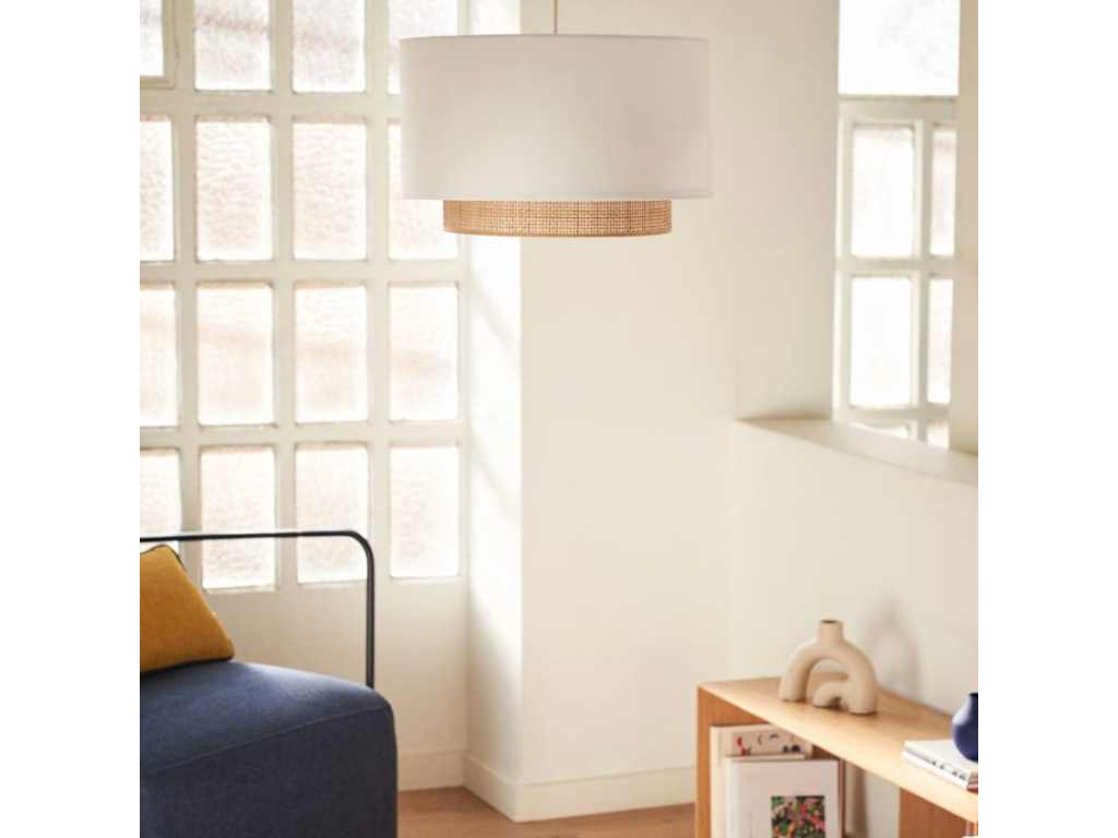 Stínidlo Kave Home Erna v sobě kombinuje bílou tkaninu s ratanem. Skvěle se hodí do přírodně laděných interiérů, který dodá romantický nádech. Co takhle ho umístit přímo do centra obývacího pokoje, nebo ho využít k osvícení kuchyňského stolu? Slušet mu to bude kdekoliv – dostupné je hned ve dvou různých velikostech.