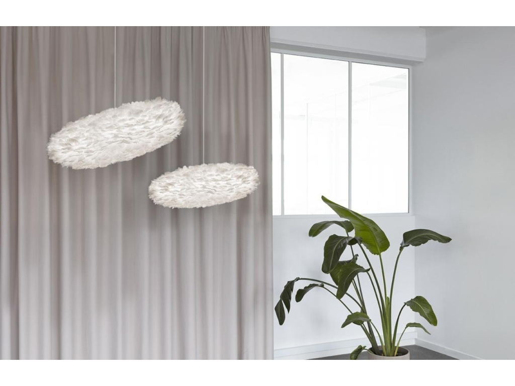 Závěsné stínidlo Eos Esther čerpá svou sílu a fascinující krásu z měkkého peří, které do domova vnáší teplou atmosféru. Toto jedinečné a ručně vyrobené stínidlo z čistě přírodního husího peří nabízí měkké, teplé světlo a dodá každému interiéru sofistikovaný a elegantní nádech. Eos je flexibilní stínidlo, které lze použít jako stojací, stolní nebo závěsnou lampu. Všechna stínidla Eos jsou k dispozici v neutrální a harmonické paletě barev pro vytvoření teplé a přívětivé atmosféry domova.