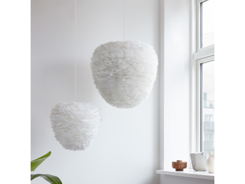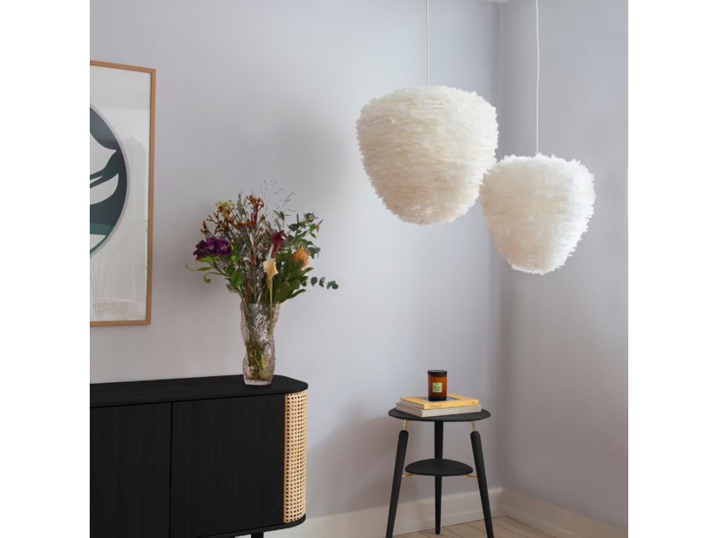 Závěsné stínidlo Eos Evia čerpá svou sílu a fascinující krásu z měkkého peří, které do domova vnáší hřejivou atmosféru. Toto jedinečné a ručně vyrobené stínidlo z čistě přírodního husího peří nabízí měkké, teplé světlo a dodá každému interiéru sofistikovaný a elegantní nádech. Eos je flexibilní stínidlo, které lze použít jako stojací, stolní nebo závěsnou lampu. Všechna stínidla Eos jsou k dispozici v neutrální a harmonické paletě barev pro vytvoření teplé a přívětivé atmosféry domova.