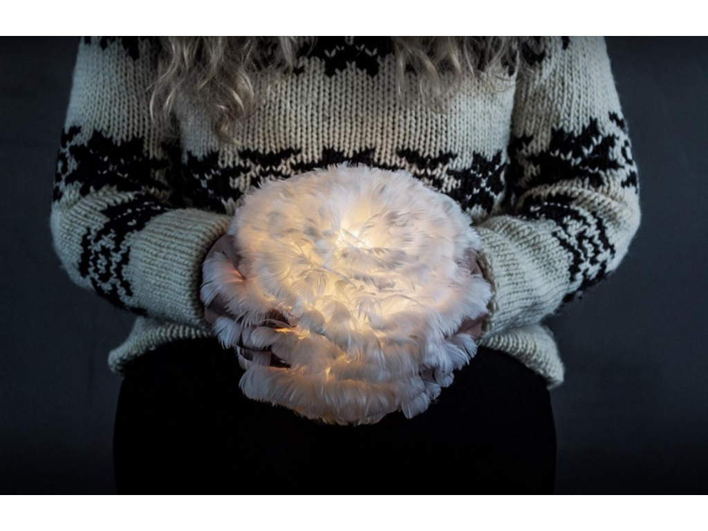 Bílé závěsné světlo Eos Micro z pravých husích per Ø 22 cm