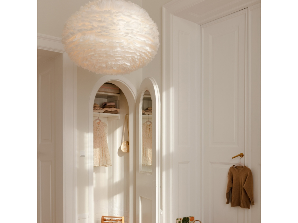 Stínidlo Eos od značky Umage – elegance inspirovaná přírodou. Peří, které zachytává a měkce rozptyluje světlo, vytváří neodolatelně útulnou atmosféru ideální pro ložnici, obývací pokoj nebo pracovnu. Je dostupné v různých velikostech, přizpůsobí se každému interiéru a poskytne flexibilní možnosti zavěšení nebo kombinace se stojany. Jeho lehký, nadčasový design přinese do vašeho domova harmonii a styl, který nikdy nevyjde z módy. Stínidlo Eos je více než osvětlení – je to ikonický doplněk, který upoutá pozornost a dodá prostoru výjimečnost.
