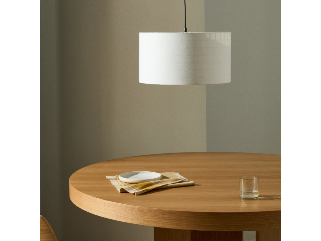 Stínidlo Dulan je vyrobeno ze 100% bavlny, která do prostoru vnáší jemnost a přirozený charakter. Jeho čistý kulatý tvar a nadčasový design se snadno začlení do většiny interiérů – od skandinávských, přes minimalistické až po rustikální, kde vytvoří příjemně rozptýlené světlo. Díky neutrálnímu provedení se stane univerzálním doplňkem vašeho domova – ať už nad jídelním stolem, v obývacím pokoji či ložnici. Dulan je volbou pro všechny, kdo hledají kombinaci estetiky a útulné atmosféry.