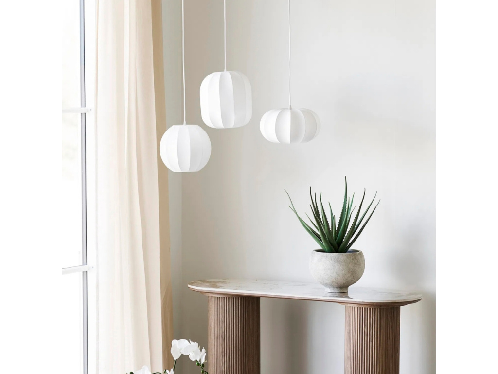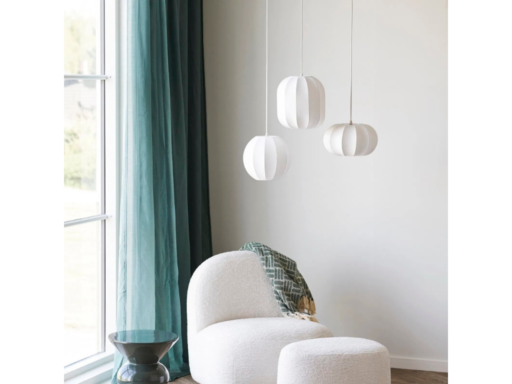 Závěsné světlo Coven zaujme na první pohled svým jednoduchým, ale sofistikovaným designem, který vnáší do interiéru harmonii a styl. Díky jemně žebrovanému hedvábnému stínidlu krásně rozptyluje světlo a vytváří příjemnou atmosféru v každé místnosti. Bílý povrch působí elegantně a čistě, takže se snadno sladí s moderním i skandinávským nábytkem. Světlo se skvěle hodí do obývacího pokoje, ložnice nebo kuchyně, kde poskytne dostatek osvětlení pro každodenní činnosti. Tento kousek najde své místo jak v domácnostech, tak v komerčních interiérech, kde pomáhá vytvářet útulné a stylové prostředí.