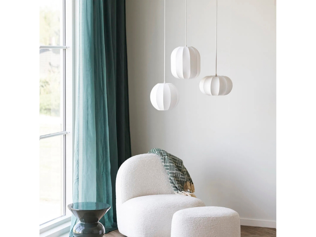 Závěsné světlo Coven zaujme na první pohled svým jednoduchým, ale sofistikovaným designem, který vnáší do interiéru harmonii a styl. Díky jemně žebrovanému hedvábnému stínidlu krásně rozptyluje světlo a vytváří příjemnou atmosféru v každé místnosti. Bílý povrch působí elegantně a čistě, takže se snadno sladí s moderním i skandinávským nábytkem. Světlo se skvěle hodí do obývacího pokoje, ložnice nebo kuchyně, kde poskytne dostatek osvětlení pro každodenní činnosti. Tento kousek najde své místo jak v domácnostech, tak v komerčních interiérech, kde pomáhá vytvářet útulné a stylové prostředí.