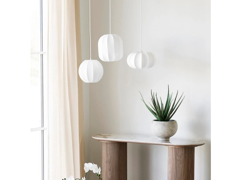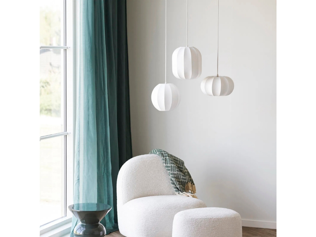 Závěsné světlo Coven zaujme na první pohled svým jednoduchým, ale sofistikovaným designem, který vnáší do interiéru harmonii a styl. Díky jemně žebrovanému hedvábnému stínidlu krásně rozptyluje světlo a vytváří příjemnou atmosféru v každé místnosti. Bílý povrch působí elegantně a čistě, takže se snadno sladí s moderním i skandinávským nábytkem. Světlo se skvěle hodí do obývacího pokoje, ložnice nebo kuchyně, kde poskytne dostatek osvětlení pro každodenní činnosti. Tento kousek najde své místo jak v domácnostech, tak v komerčních interiérech, kde pomáhá vytvářet útulné a stylové prostředí.