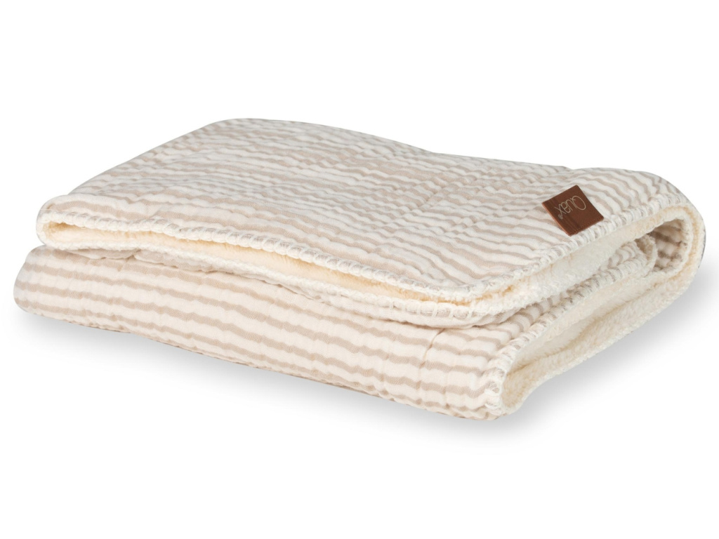 Dětská deka z kolekce Natural nabízí jemné objetí a pocit bezpečí pro vaše miminko od prvního dne. Z jedné strany je vyrobena ze 100% prémiové mušelínové bavlny s jemným pruhovaným vzorem, z druhé strany ji tvoří hebký plyšový materiál, který krásně zahřeje. Její ideální velikost umožňuje miminko pohodlně zabalit doma i na cestách, a díky snadné údržbě při praní na 30 °C bude vždy připravena k použití. Doporučujeme ji kombinovat s dalšími kousky z řady Natural pro dokonale sladěný vzhled.