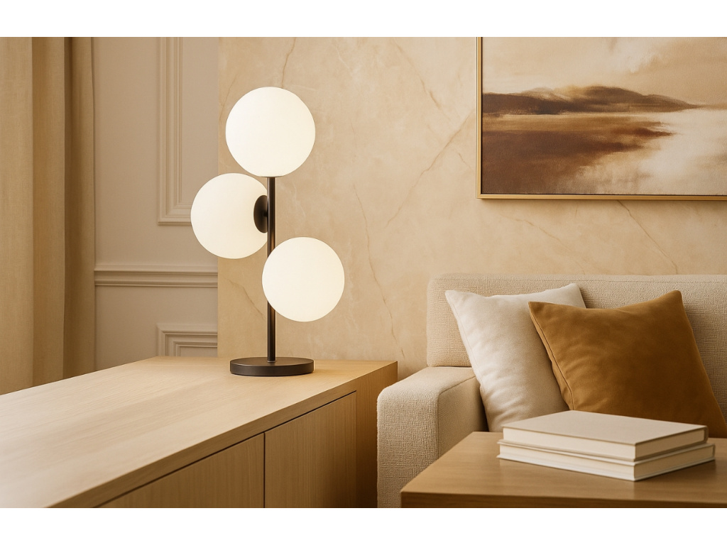 Designová stolní lampa Bubbly zaujme na první pohled svým vzhledem. 3 stínidla z mléčného skla ve tvaru koule vytváří společně s lakovanou kovovou podnoží jedinečný kontrast, který do vaše interiéru vnese nádech elegance. Lampa Bubbly rozzáří každý kout vašeho interiéru. Je libo nástěnné světlo, stojací či stolní lampu? Stačí si vybrat. Světla z řady Bubbly jsou dostupná v několika provedeních.