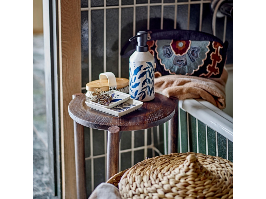 Kameninový dávkovač na mýdlo Aurora od značky Bloomingville představuje krásný doplněk do každé moderní koupelny či kuchyně. Dávkovač je vyroben z kameniny v bílém odstínu, ručně malovaný nádherným květinovým motivem. Ten vás okouzlí svojí temně modrou barvou, která doplňku dodává jeho jedinečný charakter. Každý kousek je odlišný a jedinečný díky ruční výrobě materiálu i samotného předmětu.