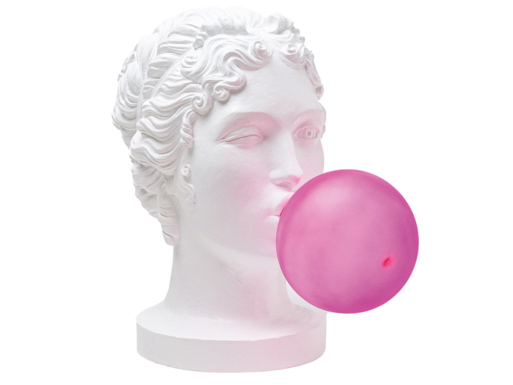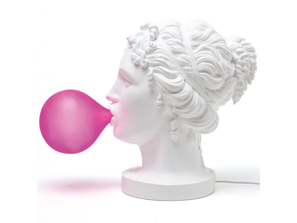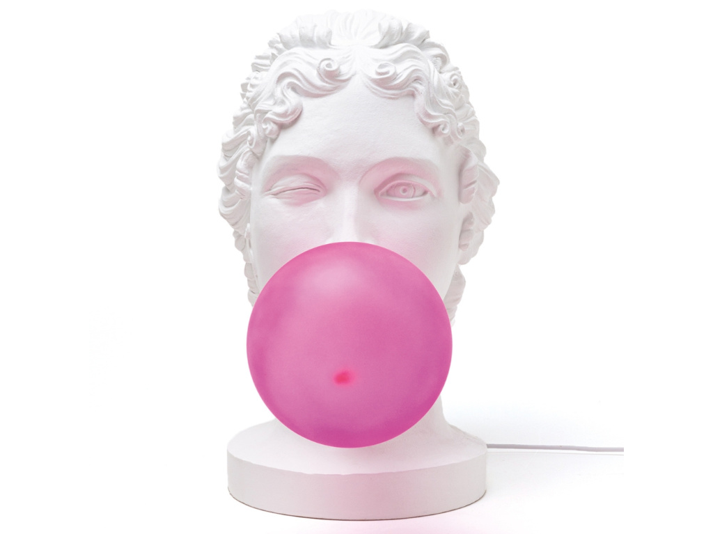 Stolní lampa Grace od značky Seletti je malý designový vtip, který okamžitě zaujme. Na první pohled připomíná klasickou sochu, ale světlo vychází z bubliny ze žvýkačky, a právě tenhle detail dělá z lampy nepřehlédnutelný doplněk. Za návrhem stojí Uto Balmoral, který ke své tvorbě přistupuje s nadhledem a provokací. Jeho tvorba vychází z potřeby komunikovat, vyvolat emoci, úsměv nebo zamyšlení a přimět diváka reagovat. Objekty v jeho podání nejsou jen funkční, ale nesou jasné sdělení a příběh. Teplé, jemné světlo navozuje příjemnou atmosféru a je ideální jako doplňkové osvětlení na noční stolek, pracovní stůl nebo komodu. Lampa je vyrobena ze skla a pryskyřice, má praktický páčkový vypínač přímo na konstrukci a dodává se včetně žárovky. Grace je ideální volbou pro ty, kteří chtějí interiér oživit výrazným detailem, který se přitom snadno kombinuje.