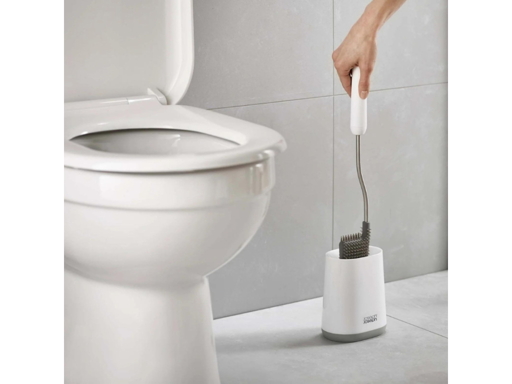 Toaletní kartáč Flex Lite s flexibilní silikonovou hlavicí ve tvaru D bude perfektním pomocníkem k čištění toalety. Hlavice usnadňuje čištění každého záhybu mísy, včetně obtížně přístupných okrajů. Dostatečná vzdálenost silikonových štětin odstraňuje riziko zanášení štětky nečistotami. Po jejím silikonovém povrchu voda rychle stéká zpět do mísy, a tak nehrozí odkapávaní na podlahu při vracení do stojánku. Hlavici doplňuje tenký nerezový držák, který umožňuje přehledné skladování.