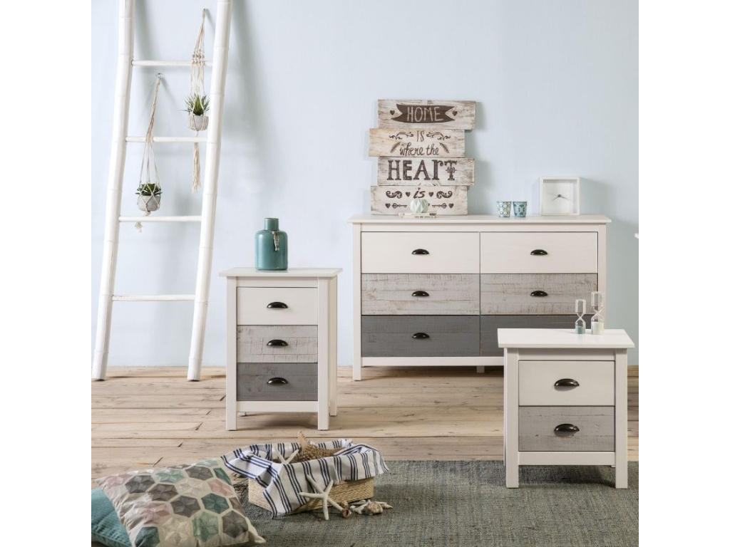 Podívám seBílo šedý borovicový noční stolek Marckeric Romantica 46 x 35 cm - velký