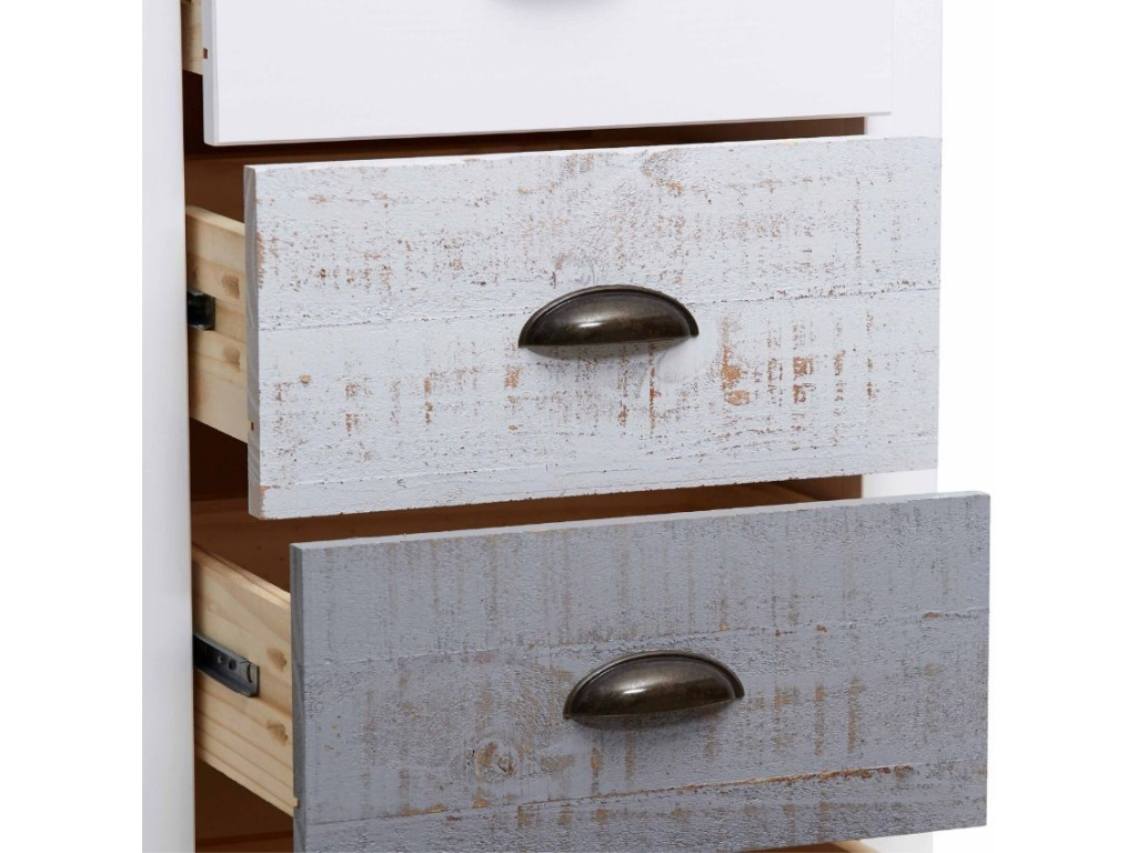 Elegantní noční stolek Romantica značky Marckeric je vyrobený z masivního borovicového dřeva. Použití patiny na předních čelech zásuvek vytváří atraktivní vzhled, díky čemuž získává stolek na unikátnosti a stylu. Bude skvělým doplňkem nejen vaší ložnice. Praktický prostor pro váš inventář zajistí několik zásuvek. Doporučujeme tento nábytek kombinovat také s ostatními produkty řady Romantica, získáte díky tomu dokonalou souhru nábytku ve vašem interiéru.