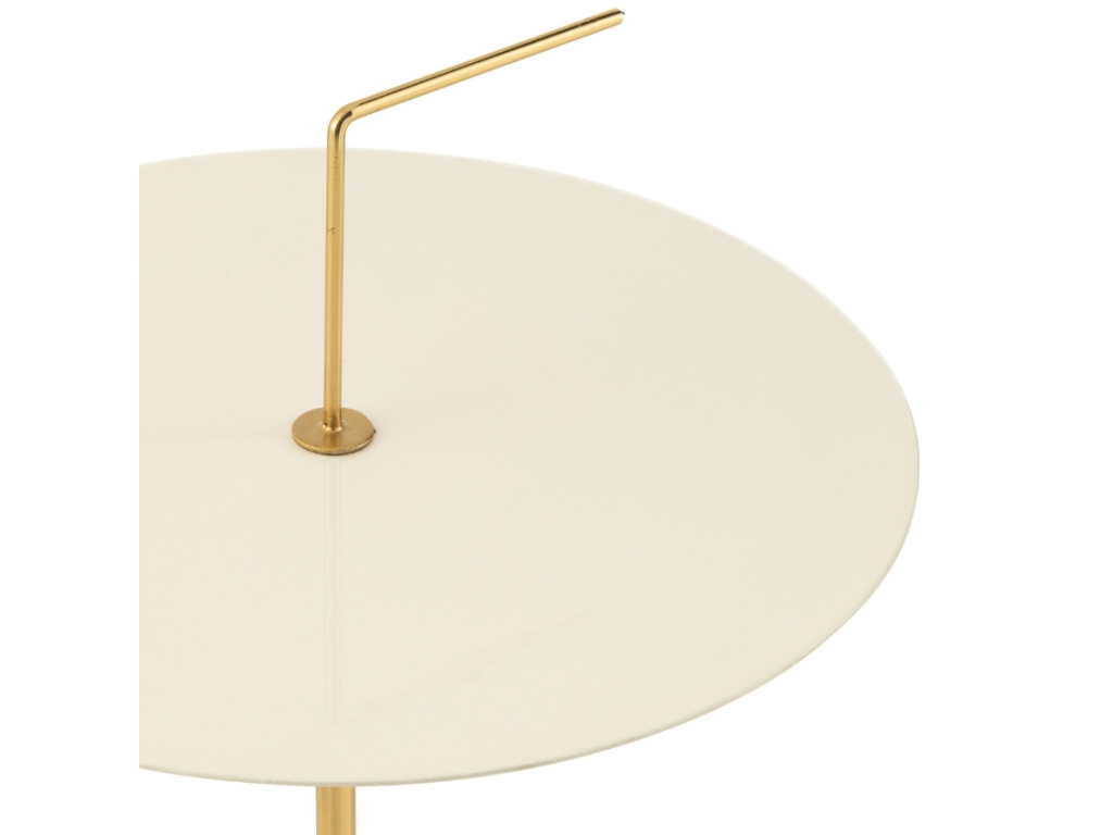 Odkládací stolek Sides zaujme svým unikátním designem. Bíle lakovaná kovová deska a podstavec vytváří společně se zlatou podnoží atraktivní kontrast, který ozvláštní váš interiér a vnese do něj nádech elegance. Příjemným bonusem je praktické držadlo, které je nejen designovým elementem, ale také funkčním prvkem pro snadné přenášení. Stolek nabízíme i v černé barvě!