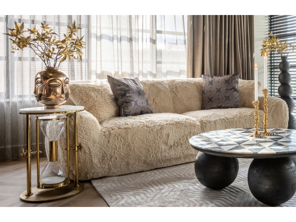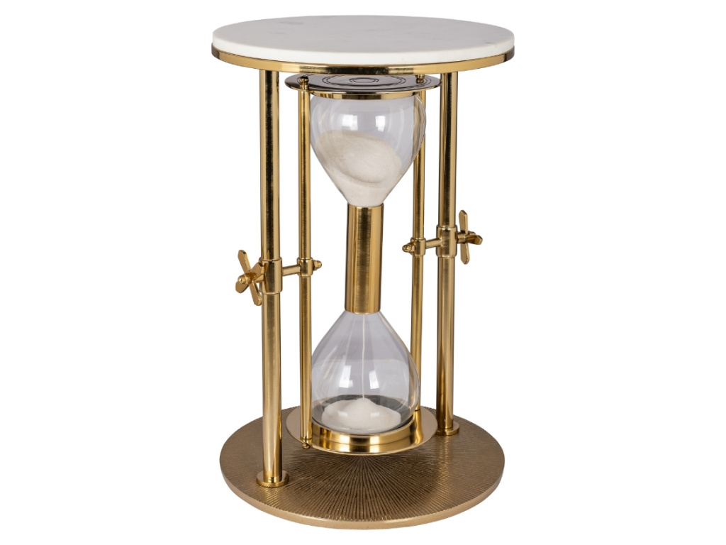Odkládací stolek Tempus přináší neotřelý design díky kombinaci elegantní zlaté konstrukce s fascinujícími přesýpacími hodinami, což vytváří nejen luxusní, ale i hravý doplněk vašeho domova. Deska z bílého mramoru dodává stolku sofistikovaný nádech, který působí lehce a vzdušně. Tento stolek může sloužit jako praktická odkládací plocha, ale také jako jedinečný dekorativní prvek, který upoutá pozornost každé návštěvy.