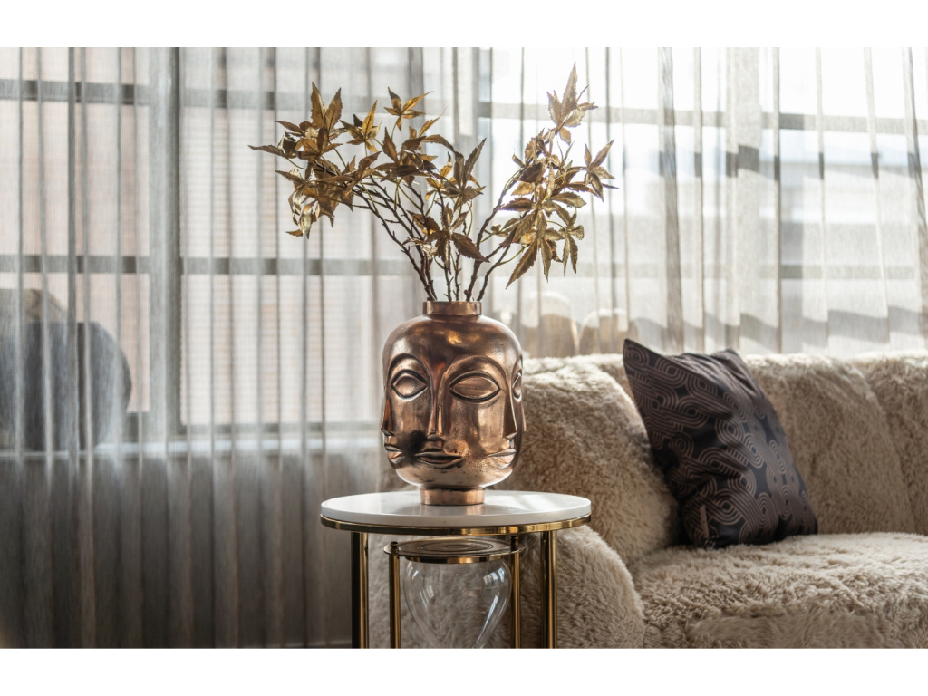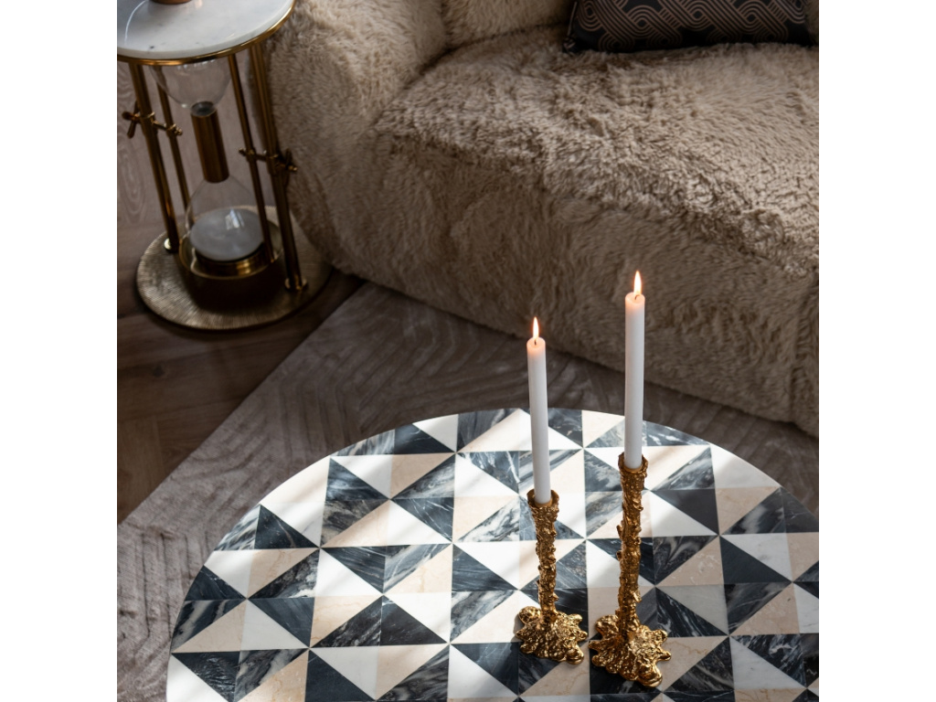 Odkládací stolek Tempus přináší neotřelý design díky kombinaci elegantní zlaté konstrukce s fascinujícími přesýpacími hodinami, což vytváří nejen luxusní, ale i hravý doplněk vašeho domova. Deska z bílého mramoru dodává stolku sofistikovaný nádech, který působí lehce a vzdušně. Tento stolek může sloužit jako praktická odkládací plocha, ale také jako jedinečný dekorativní prvek, který upoutá pozornost každé návštěvy.