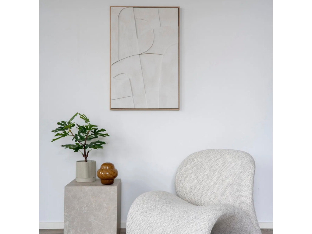 Minimalismus a čistota – to je jednoduché a výstižné shrnutí pro abstraktní obraz Madeline od Nordic Living. Obraz je charakteristický reliéfním motivem, který si hraje s denním světlem a stíny, a díky tomu vytváří jedinečnou vizuální harmonii a rovnováhu. Skvěle zapadne do moderních, severských a minimalisticky laděných interiérů. Neváhejte a ozdobte prázdnou zeď nad pohovkou nebo nad postelí tímto jedinečným kouskem! V naší nabídce najdete i další obrazy ze série Madeline – rozhodnete se pro jeden z nich, nebo je vystavíte společně?