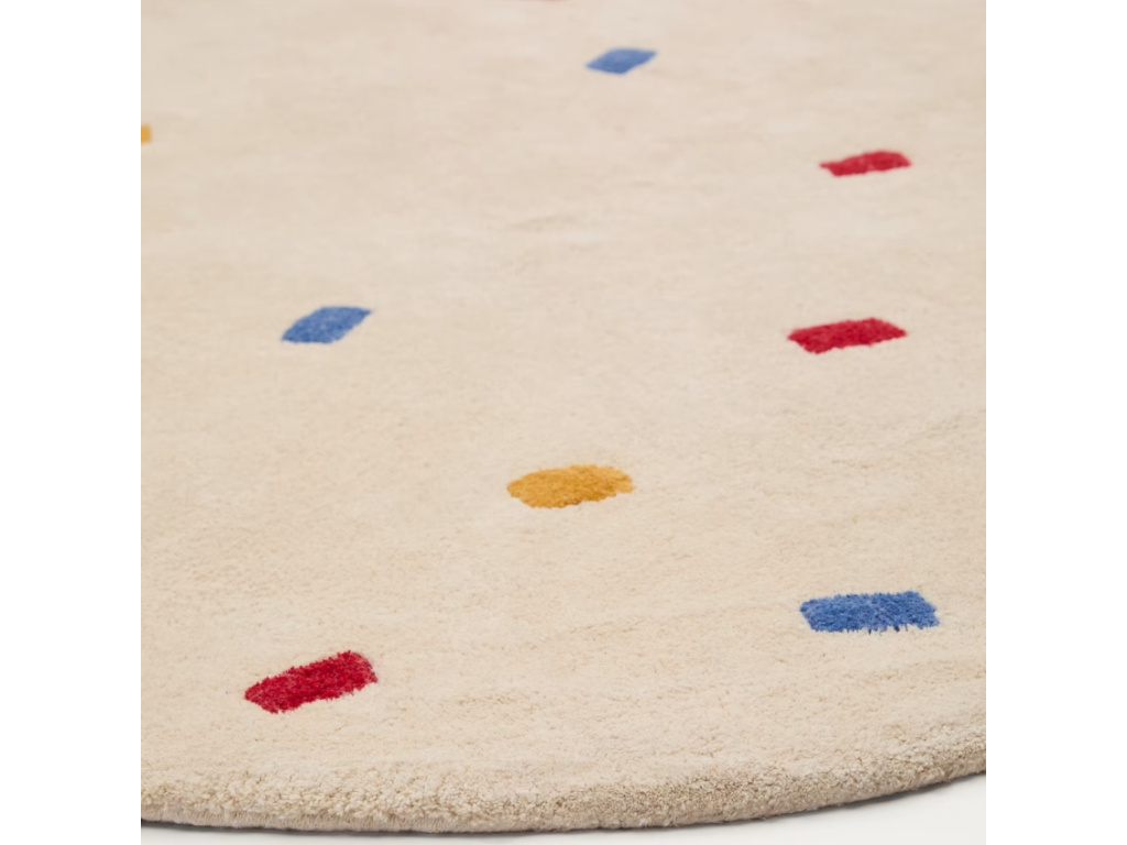 Dodejte dětskému pokoji veselý nádech s tímto kulatým kobercem Kave Home Luli. Je vyroben ze 100% bavlny a pyšní se dekorem v podobě malých barevných obdélníků. Může sloužit nejen jako stylová dekorace ke zútulnění, ale i jako hrací podložka, a to díky svému krátkému a měkkému vlasu.