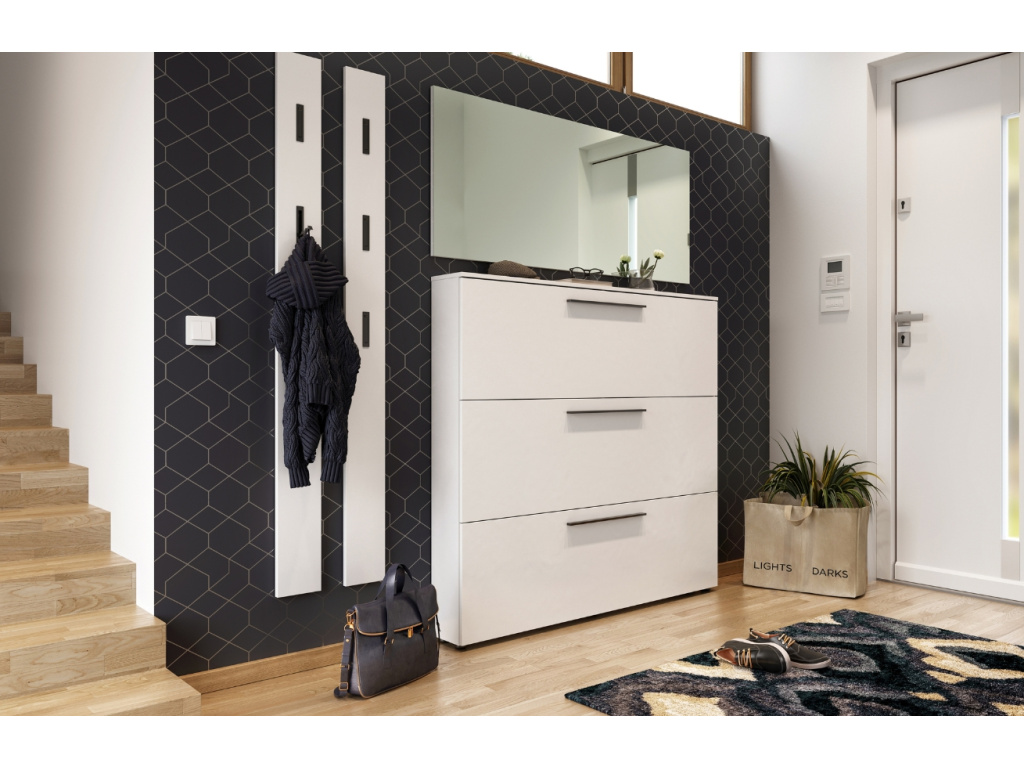 Designový botník Utah vás zaujme svým příjemným vzhledem. Je vyrobený z laminátu a na originalitě mu dodávají černé kovový úchytky, které v kombinaci s bílým lakovaným korpusem botníku vypadají skvěle. Botník Utah přinese do vaší předsíně pocit tepla a stane se nezbytnou součástí vašeho domova. Dvě výklopné zásuvky nabízejí prostor pro uložení až 12 párů bot. Botník je ideální především do menších interiérů, kde díky němu získáte praktický prostor pro uložení obuvi.
