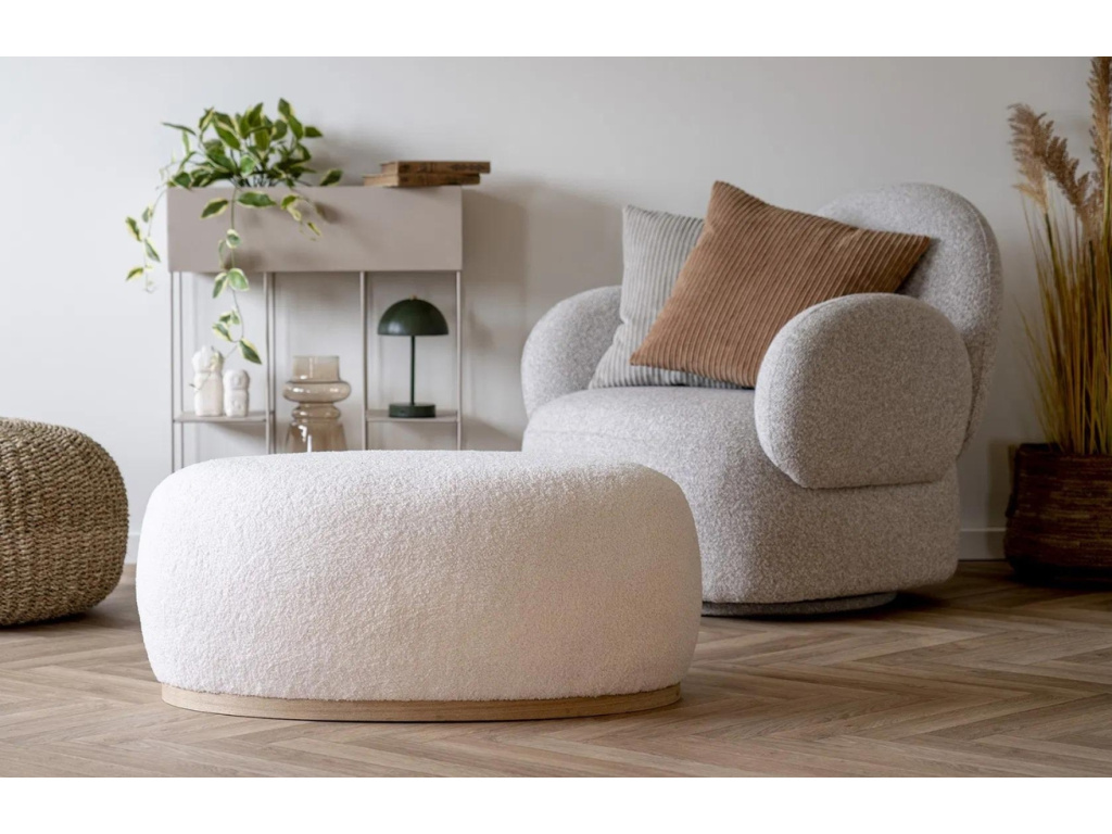 Minimalistický taburet Belfort značky Nordic Living zaujme na první pohled svým svěžím designem. Příjemné bouclé čalounění vytváří atraktivní prvek, který stylově doplní jakýkoliv moderní interiér. Designový element v podobně jednoduché dřevěné podnože ozvláštňuje celkový vzhled taburetu a dodává mu na osobitosti a originalitě. Taburet Belfort se skvěle hodí do moderních i klasických interiérů. Využít ho můžete jako místo k sezení, nebo jej přisunout ke gauči a mít ho jako odkládací stolek.