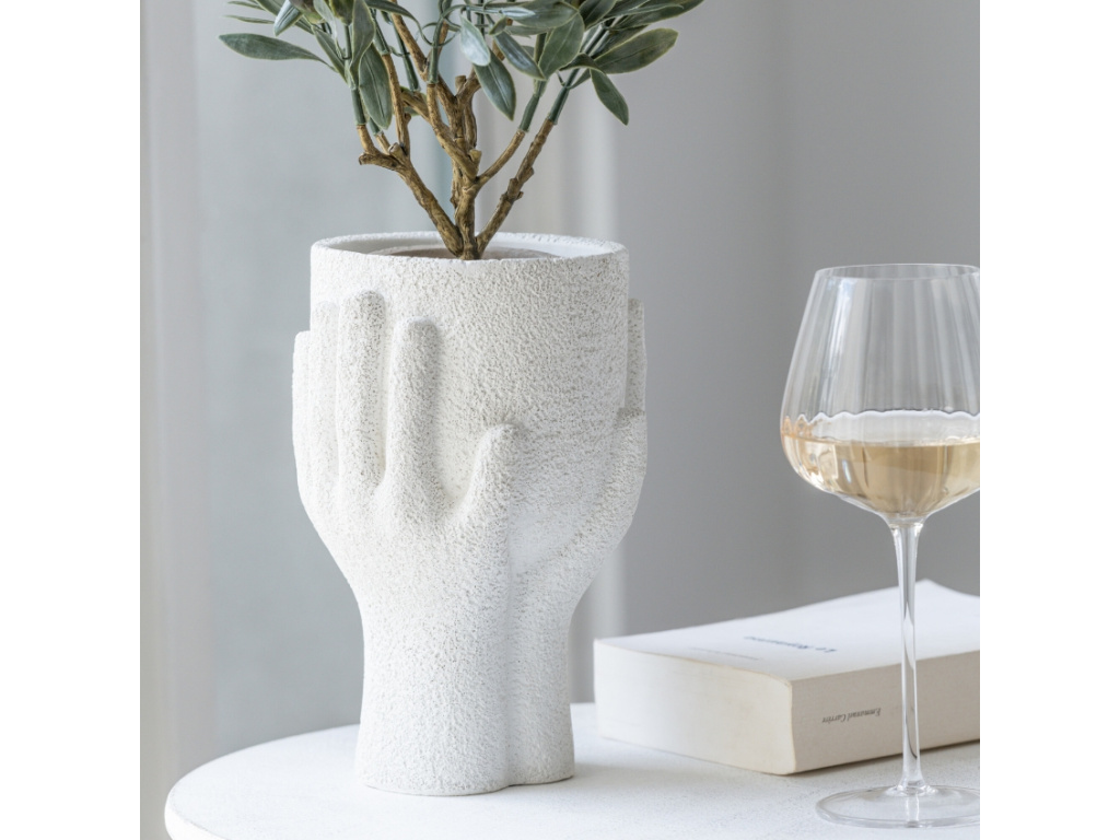 Živé i umělé květiny budou vypadat skvěle v tomto cementovém květináči Bransi od značky J-line. Kombinuje v sobě funkci květináče i uměleckou sošku v podobě rukou, které drží květináč. Minimalistická a na první pohled zajímavá designovka vnese do každého moderního interiéru notnou dávku elegantního šmrncu. Vybrat si můžete hned ze dvou velikostí.